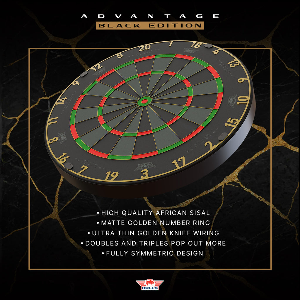 Redefine your setup with the professional impact of the Bull's Advantage Black Dartboard.