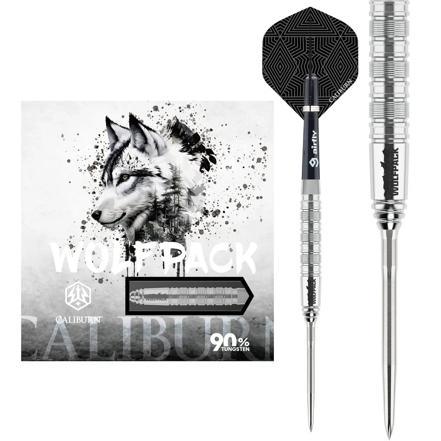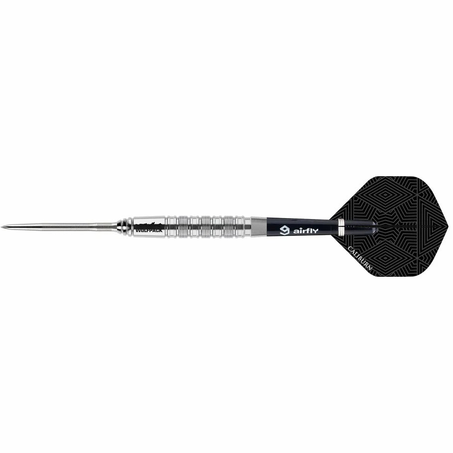 Caliburn Wolfpack Darts - Steel Tip - 90% Tungsten - W7 - 21g. Expertly crafted for optimal precision and control, the Caliburn Wolfpack Darts feature 90% straight tungsten barrels with ringed grip and micro-ring sections. Experience superior performance with every throw. Supplied fitted with the Caliburn Replaceable Point System.