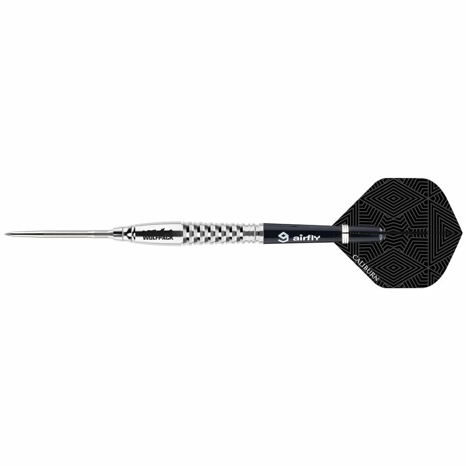 Caliburn Wolfpack Darts - Steel Tip - 90% Tungsten - W8 - 18g. Upgrade your dart game with Caliburn Wolfpack Darts. Made with 90% tungsten, the curved barrels feature a shark grip for enhanced accuracy and control. Take your aim to the next level with this professional-grade steel tip set. Supplied fitted with the Caliburn Replaceable Point System.