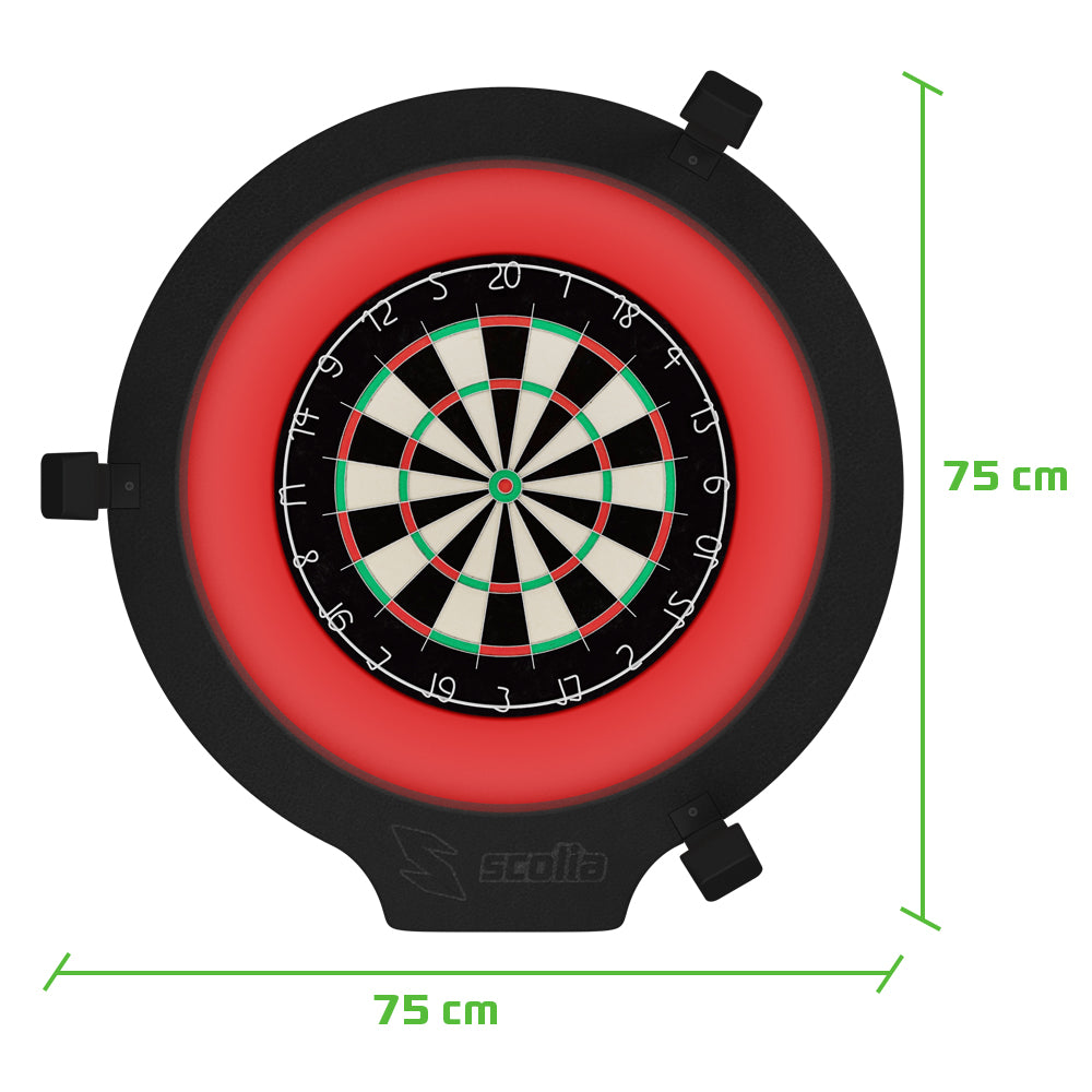 Scolia Home with the Scolia Spark light surround. If you need a dartboard and a surround, too, you can simply add the ones you want to your basket. The Scolia Home product does not include any display device. The Scolia application runs in the web browser, so you can use any smart device (smartphone, tablet, PC) to follow your game!