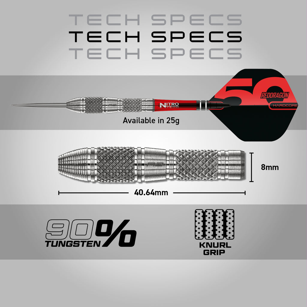 Pure knurled perfection, delivered in a futuristic barrel design that featured some of the first-ever tapered noses with micro grip at both the front and rear, Grizzly's pioneering position was to offer every player a full-length grip dart that performed no matter where you held your throw. The knurled grip was so immaculately finished it resembled the sparkle of diamonds, oozing confidence with every throw.
